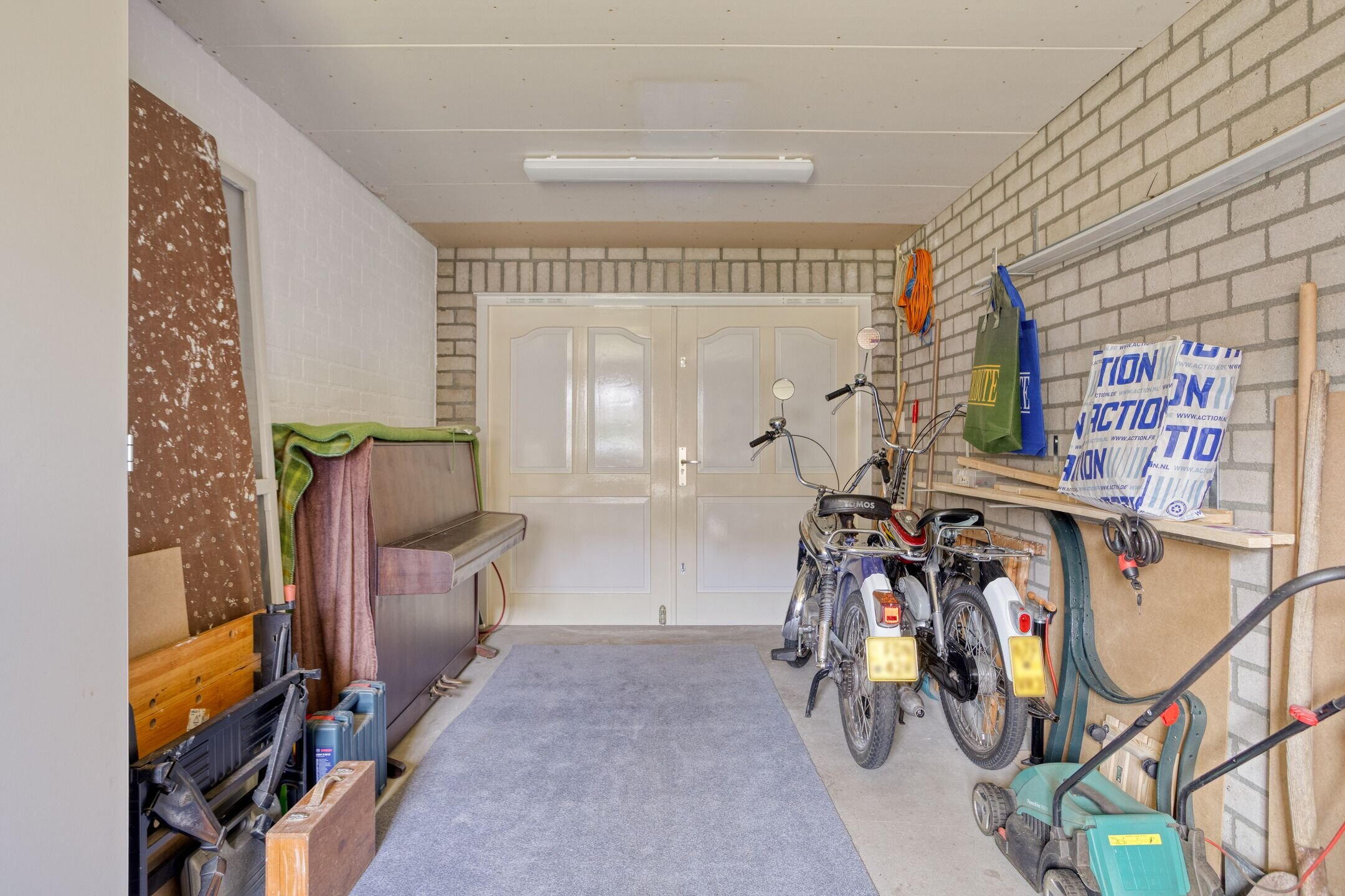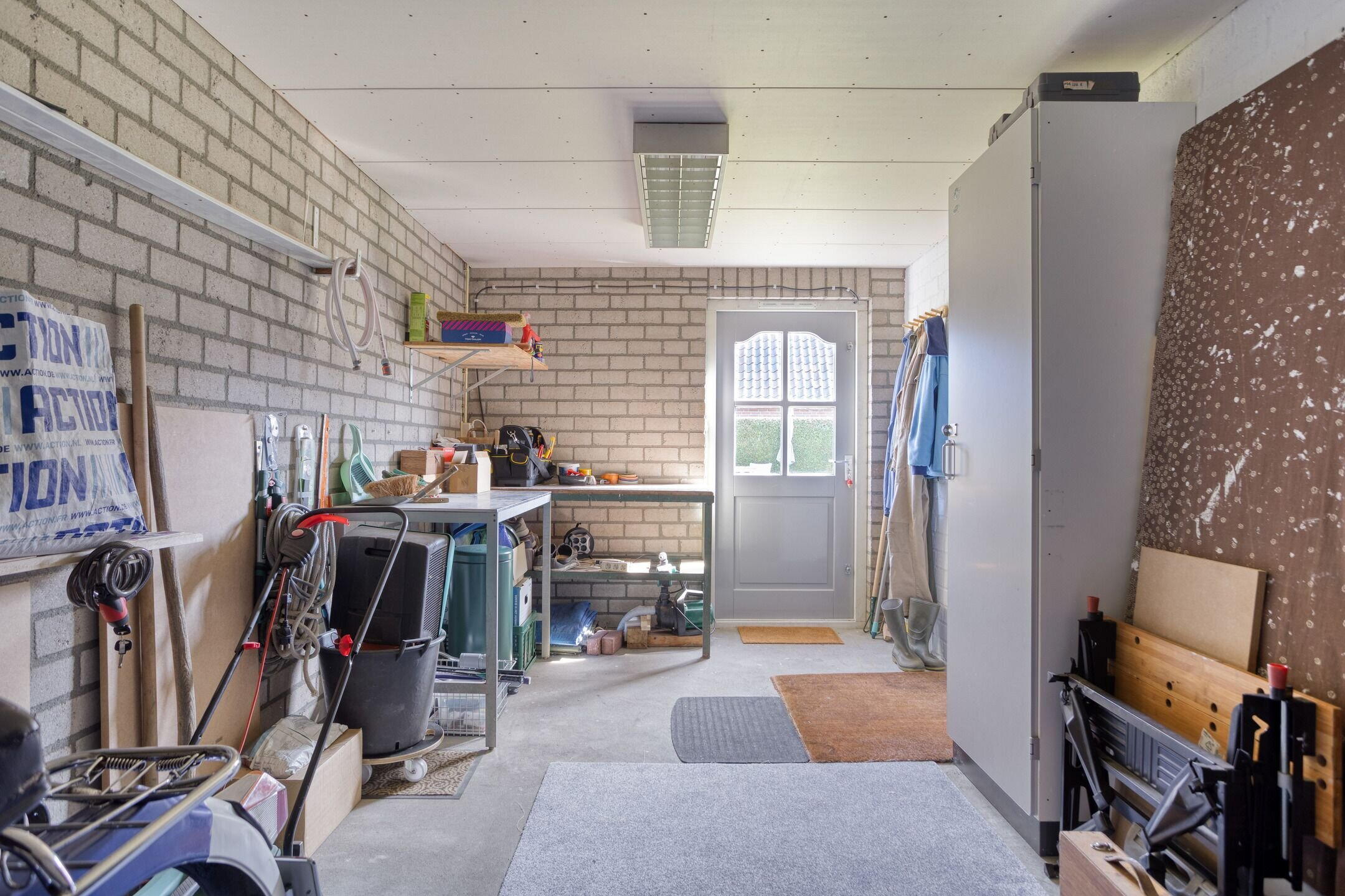 De aangebouwde, volledig geïsoleerde stenen garage is voorzien van elektra, dubbele deuren en een loopdeur naar de tuin en bijkeuken. Ideaal voor hobby, opslag of het stallen van een auto.