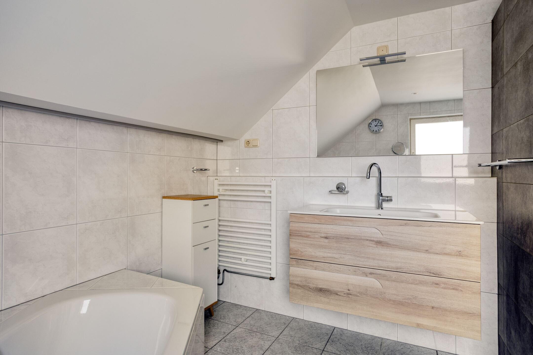 - Inloopdouche, ligbad, toilet, vloerverwarming, en wastafelmeubel