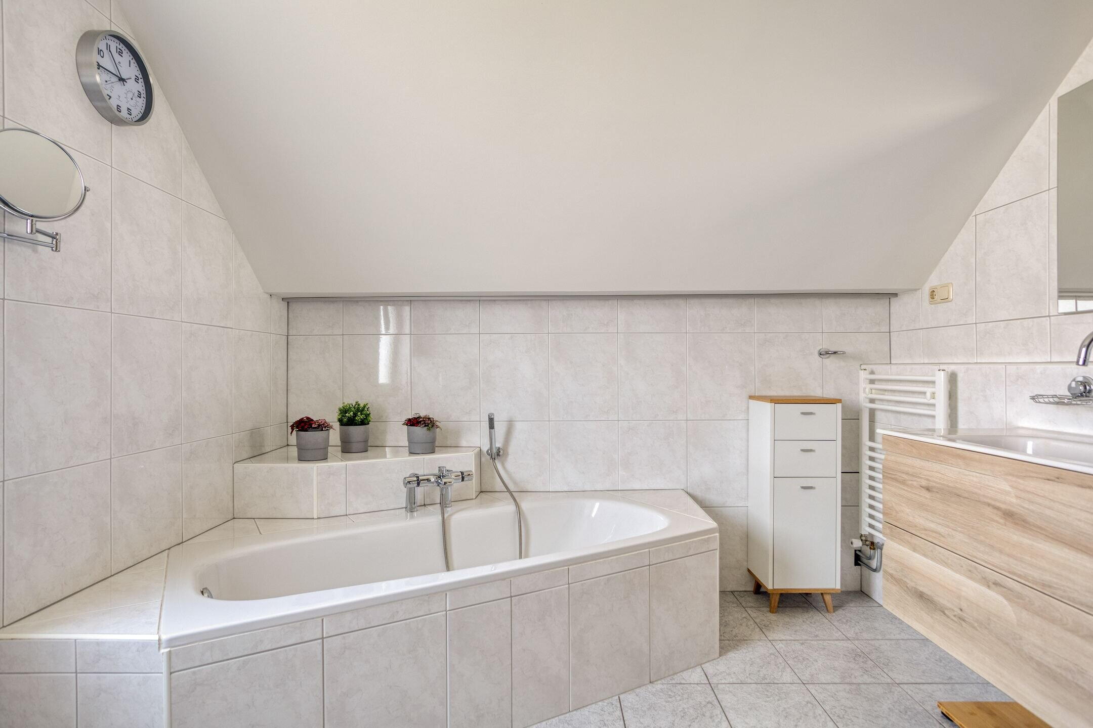 De royale badkamer is compleet uitgevoerd met een ligbad, vernieuwde inloopdouche (2021), zwevend toilet, wastafelmeubel met spiegel en verlichting, mechanische ventilatie en een gestukt plafond met inbouwspots. Daarnaast is de badkamer voorzien van vloerverwarming.