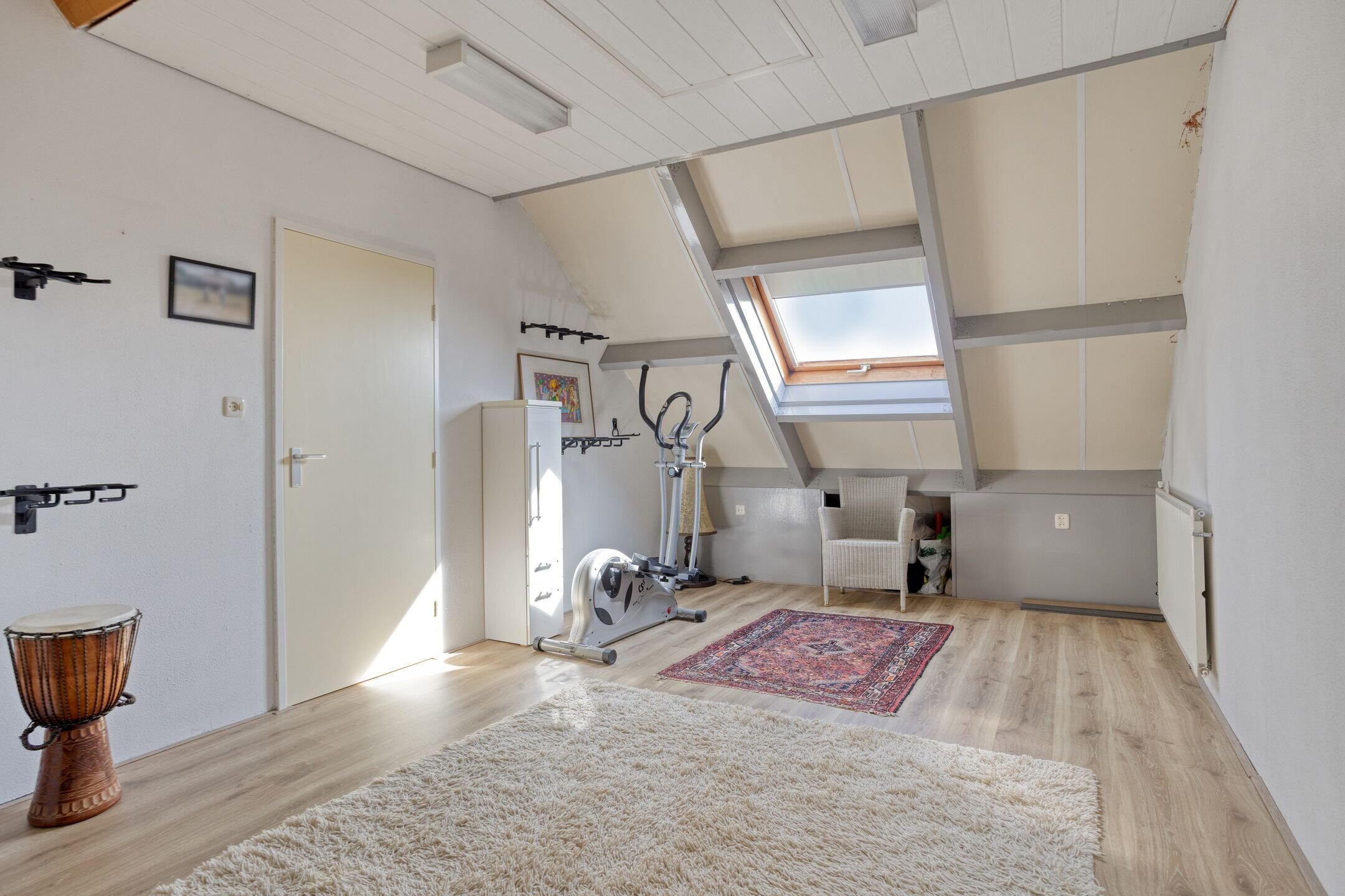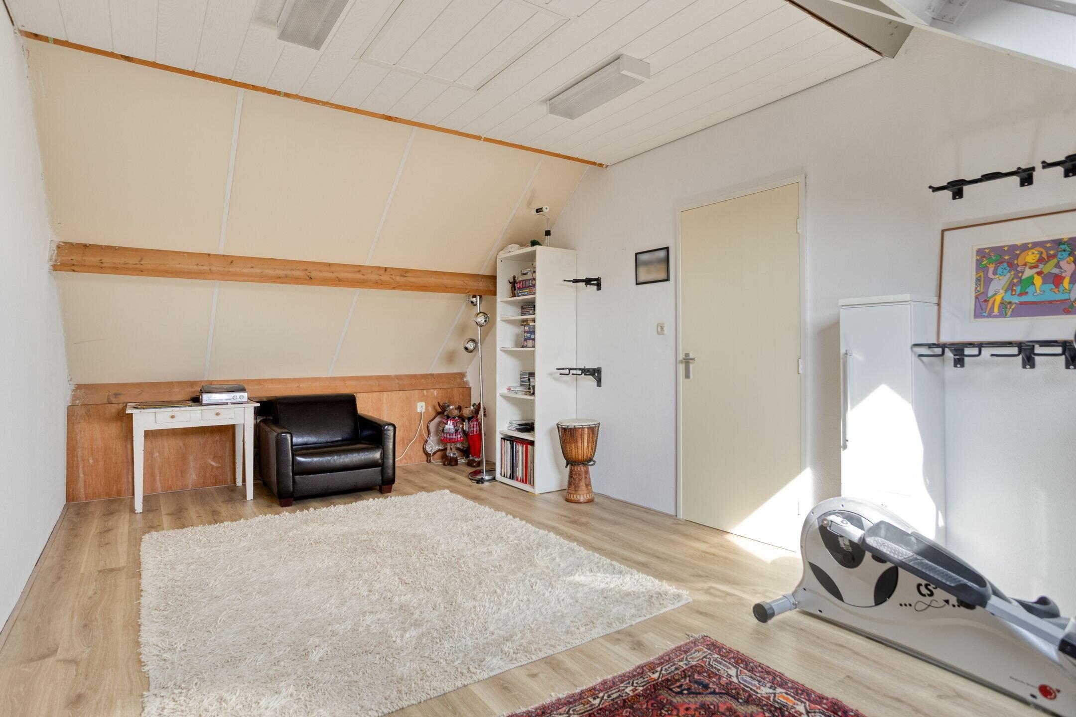 Via de vaste trap bereikt u de tweede verdieping. Hier vindt u een ruime overloop met veel bergruimte onder de schuine kap en een aparte berging. De vierde slaapkamer is ruim en licht dankzij het Velux dakraam en beschikt over opbergruimte achter de knieschotten. Boven het plafond bevindt zich nog een extra zolder-/bergruimte.