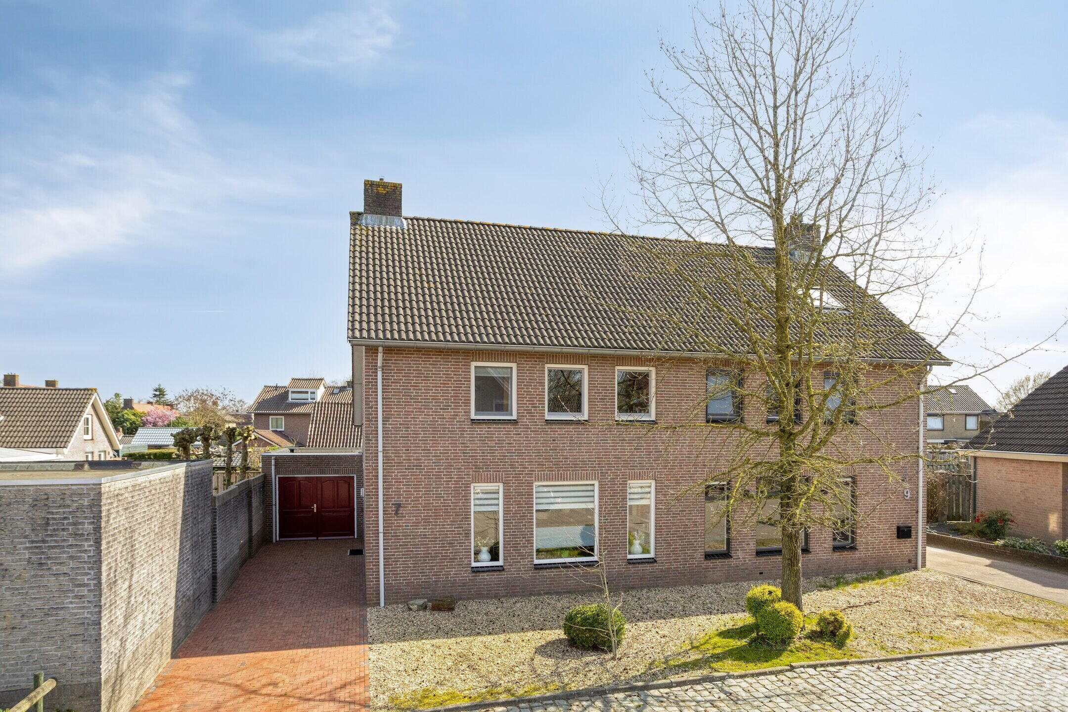 De woning beschikt over een verzorgde grind voortuin en een ruime, in 2023 vernieuwde beklinkerde oprit met voorbereiding voor een elektrische laadpaal.