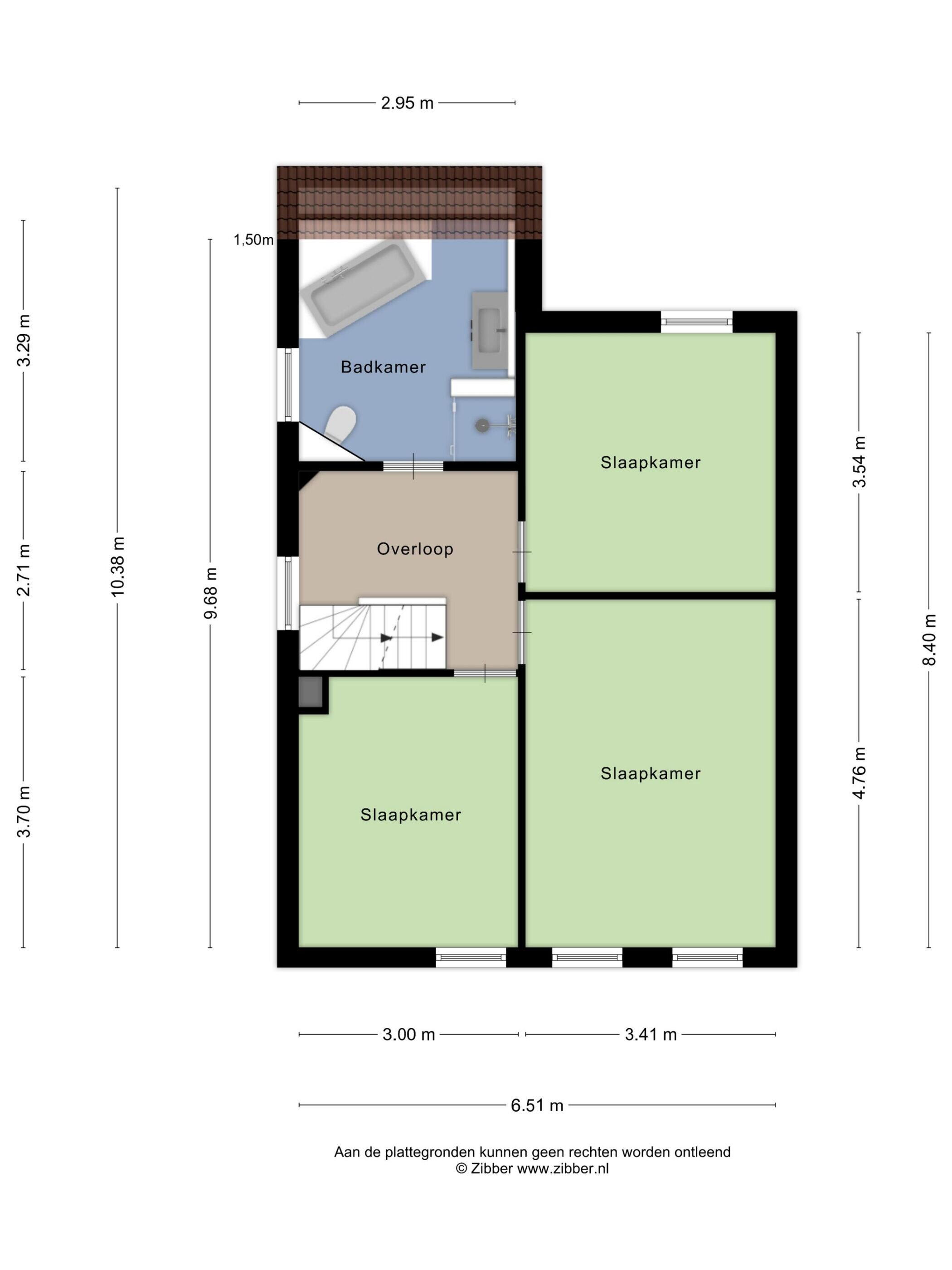 De ruime overloop geeft toegang tot drie slaapkamers. De grootste slaapkamer bevindt zich aan de voorzijde en is voorzien van een tv-aansluiting en veel stopcontacten. Aan de voorzijde ligt tevens de tweede ruime slaapkamer. De derde slaapkamer bevindt zich aan de achterzijde en beschikt over een wastafelaansluiting.